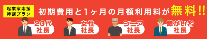 ワンストップビジネスセンターでは初期費用と1か月分料金が無料になる割引プランを提供しています。