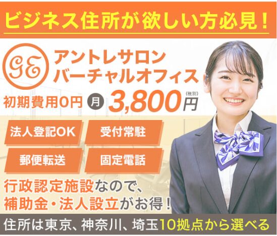 アントレサロン【まとめ】初月無料キャンペーン中のバーチャルオフィス