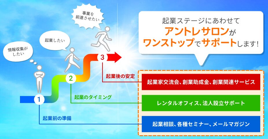 くわしくは「アントレサロンの起業支援」をご覧ください。