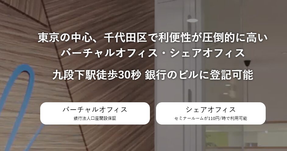 東京都千代田区九段下の「りそな九段ビル」内を拠点とし、東京メトロ・都営地下鉄の九段下駅から徒歩30秒という抜群のアクセスと「千代田区の一等地住所」をリーズナブルに利用できるのが強みです。