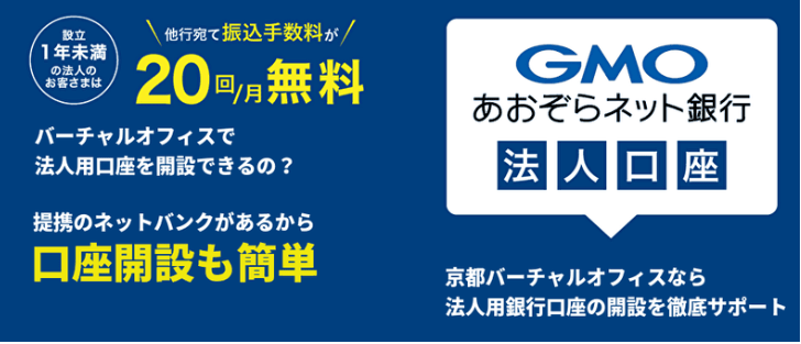 京都バーチャルオフィスはGMOあおぞらネット銀行と提携しています。