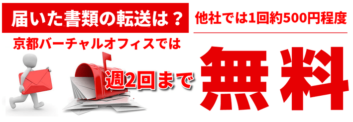 京都バーチャルオフィスのスタンダードプラン以上には「書類に限り週2回まで無料で転送するサービス」が含まれています。