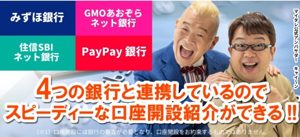 レゾナンスは「みずほ銀行」「GMOあおぞらネット銀行」「住信SBIネット銀行」「PayPay銀行」の法人口座開設を紹介してくれます。