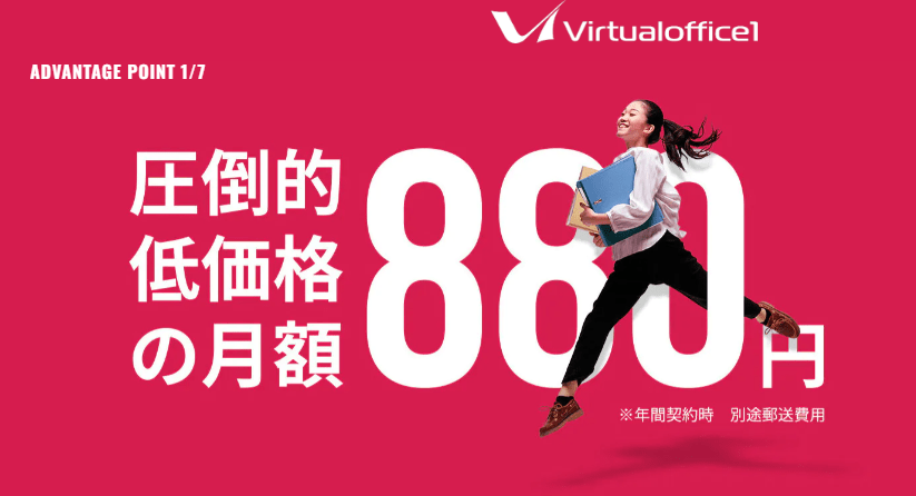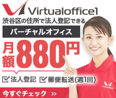 バーチャルオフィス1とは、業界最安値クラスの月額料金でサービスを提供するバーチャルオフィス。