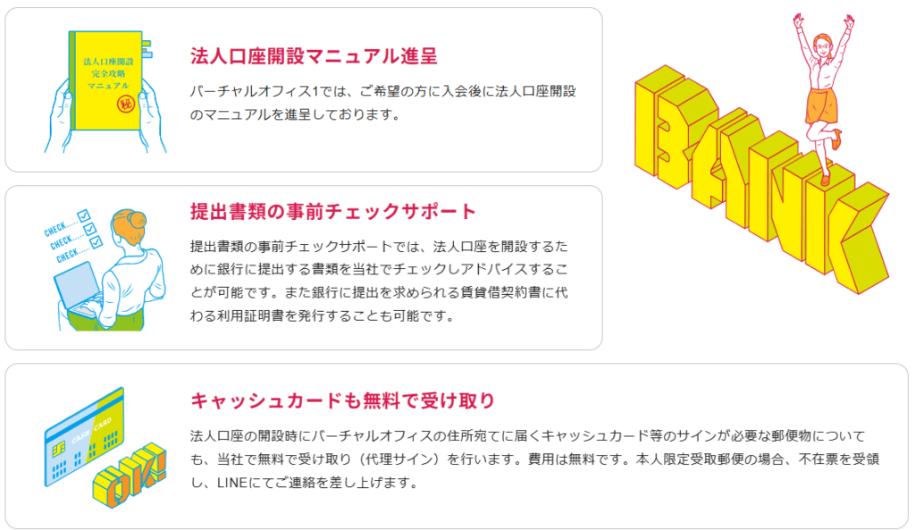 バーチャルオフィス1では法人の銀行口座を開設できますか?